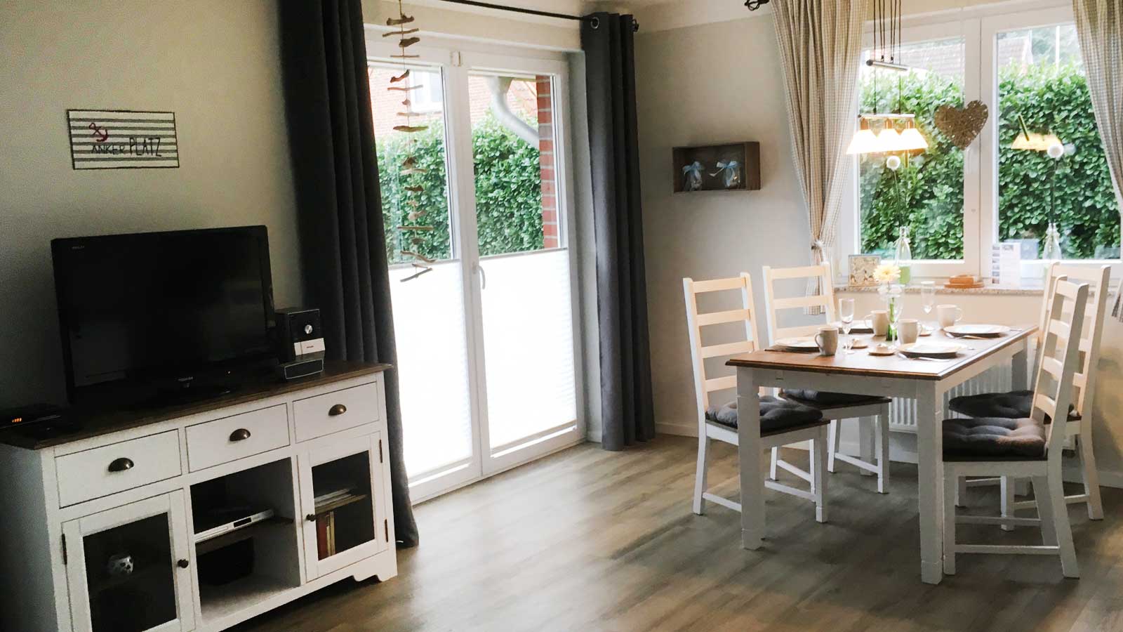 Die ca. 70 m² große Ferienwohnung liegt im Erdgeschoss des Hauses im Lotsenweg 8 in Burgstaarken auf Fehmarn. Die hell und modern eingerichtete Wohnung bietet Platz für vier Personen und ein Kleinkind. Sie unterteilt sich in einem großzügigen Wohnraum mit komplett ausgestatteter Küchenzeile, 2 Schlafzimmer für je 2 Personen und 1 Duschbad mit Handtuchwärmekörper, Waschmaschine und Fußbodenheizung. Reisebettchen mit Matratze und Hochstuhl stehen zur Verfügung.